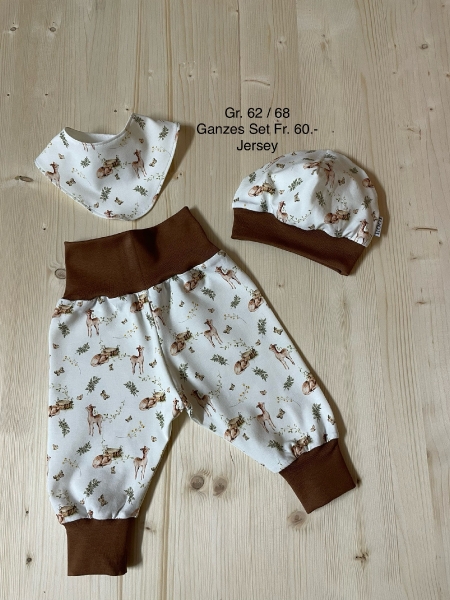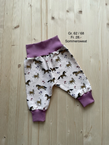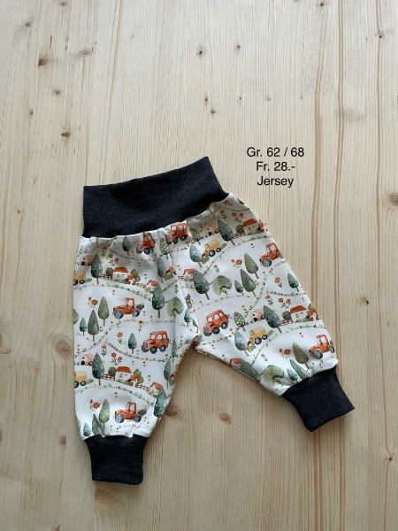 Kurze und lange Pumphösli nähe ich aus Jersey und Musselinstoff in diversen Grössen.Auf Anfrage sende ich gerne Bilder meiner Auswahl zu.